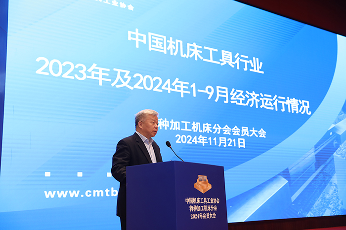 協會執行副理事長王旭作“2024年機床工具行業經濟運行情況介紹”主旨報告,分享了近年來全球機床行業生產、消費情況以及我國機床工具行業2024年1-9月的總體運行情況,深入分析了機床工具市場的新形勢、新情況,并對2024年的全年形勢作了展望。分會理事長吳強的報告以“特種加工技術及裝備產業的發展及應用”為題,對我國電加工機床行業1-9月的運行情況進行了深入分析,對行業運行特點做了總結,預測了全年運行情況。并對特種加工機床在航空航天領域的應用情況和典型案例做了分析和解讀,針對特種加工機床行業未來幾年的發展戰略和方向提出了建議。兩個報告分別對機床工具行業和電加工機床行業進行了充分的梳理和理性的剖析,數據詳實,分析精辟,與會代表受益匪淺。
