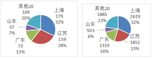 圖21 金剛石拉絲模進口省市分布