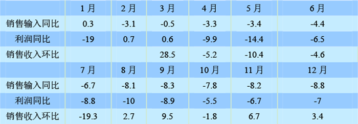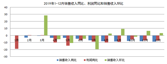 表4 2019年1-12月銷售收入增長率總利潤、銷售環比增長率(月報數據)