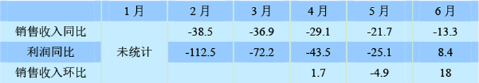 表5 2020年1-6月銷售收入增長率、總利潤和銷售環比增長率(月報數據)