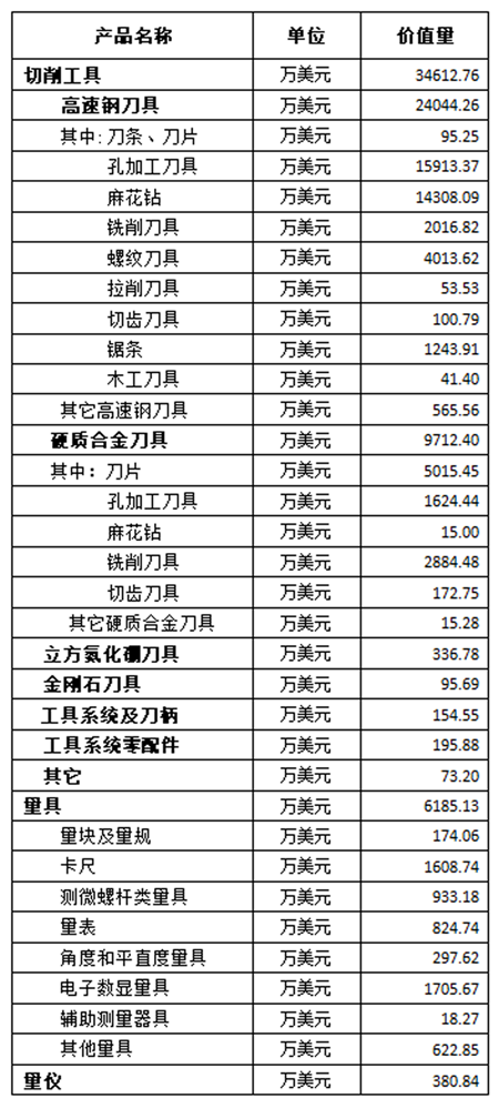 根據工具分會收集到的海關數據顯示,2020上半年刀具出口額87億人民幣,與去年同比下降11.87%;進口額48億人民幣,同比去年下降15.82%。量具和量儀出口額5億人民幣,同比下降18.47%;量具和量儀進口額4.7億人民幣,同比下降26.47%。出口下降明顯好于進口下降。