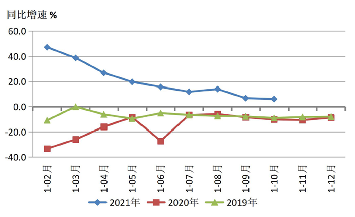 2021年1-10月,行業整體運行仍保持平穩增長,受上年基數因素影響,各項主要指標同比增速繼續逐月回落,但同比增幅仍然較高。