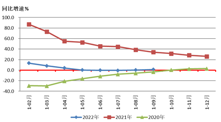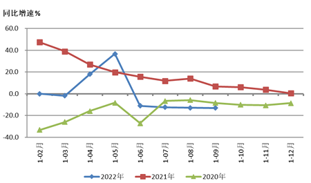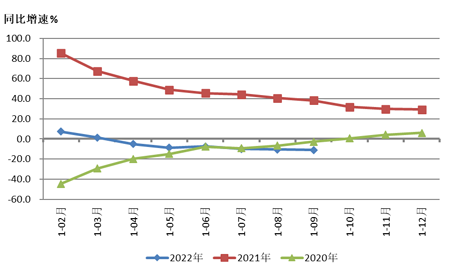 圖1是2022年1-9月與2021年、2020年重點聯系企業累計營業收入同比增速的對比。
