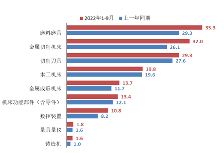 2022年1-9月,中國機床工具工業協會重點聯系企業營業收入同比增長1.2%。其中,金屬切削機床分行業同比下降5.9%,金屬成形機床分行業同比增長25.9%,工量具分行業同比下降1.9%,磨料磨具分行業同比增長16.2%。