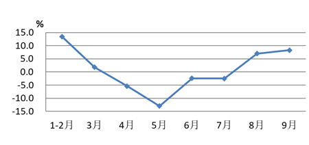 圖6 2022年前三季度機床工具行業月度營業收入同比