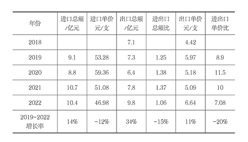 表 2019至2022年絲錐進出口情況(來源:海關)