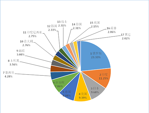 涂層刀片出口目的地主要為:俄羅斯31.62%,德國15.54%,印度11.08%,美國6.10%,土耳其5.54%,韓國4.21%,新加坡2.58%。非涂層刀片出口目的地主要為:俄羅斯23.33%,印度11.25%,日本9.68%,美國9.39%,德國8.88%,新加坡7.86%,墨西哥4.28%。