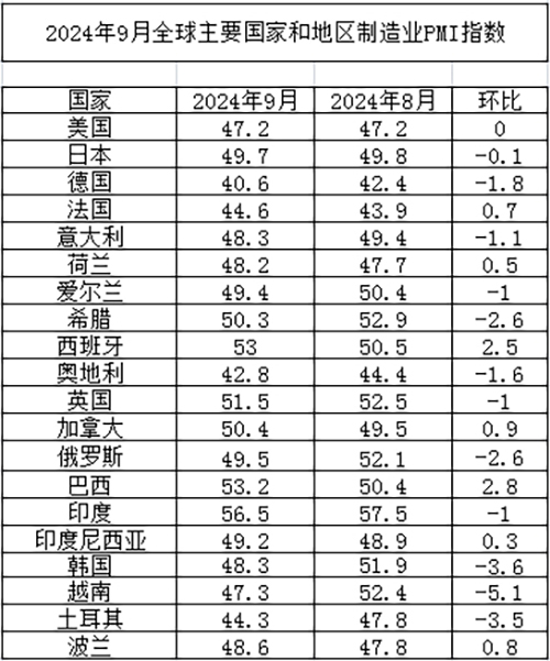 9月全球制造業PMI為48.8%,恢復力度仍待提升