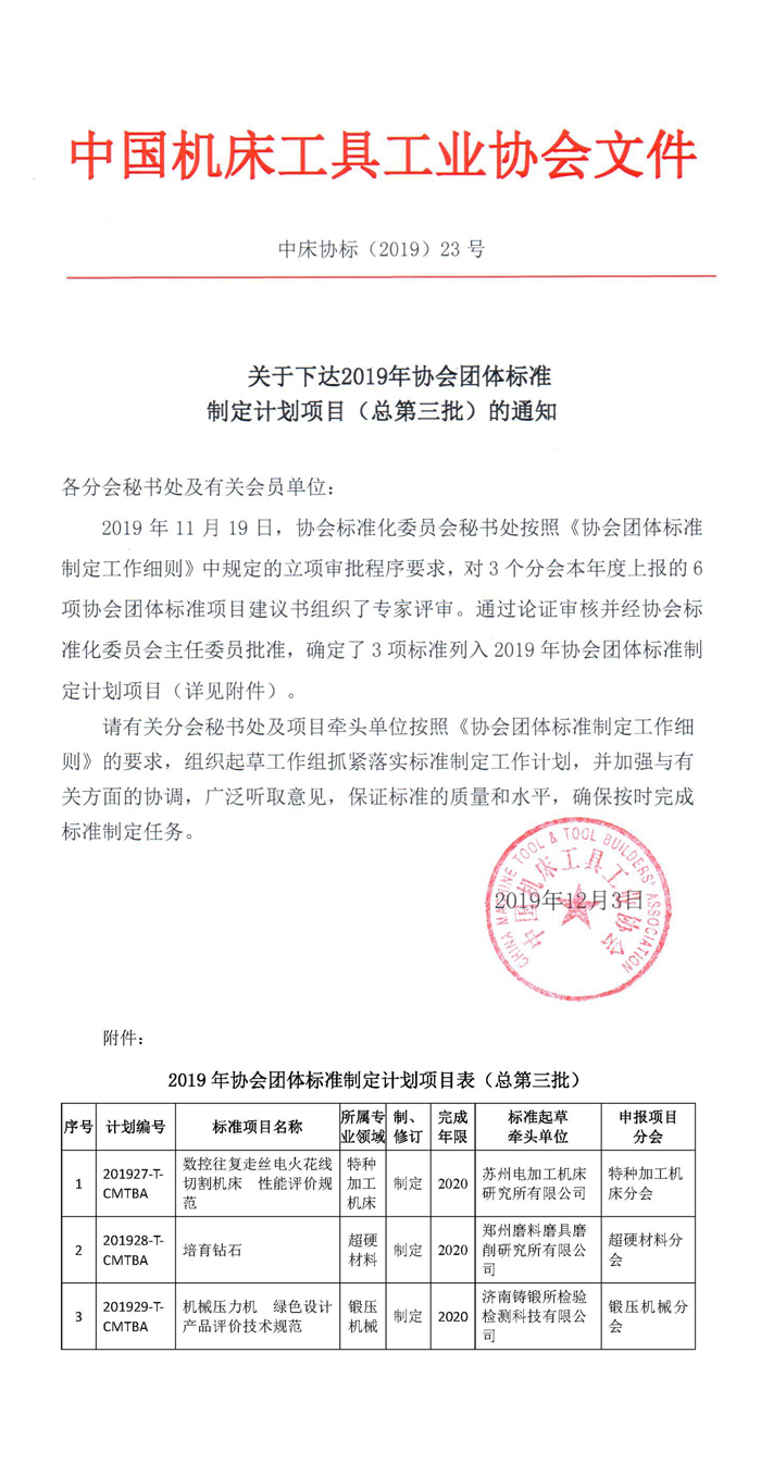 關于下達2019年協會團體標準制定計劃項目(總第三批)的通知