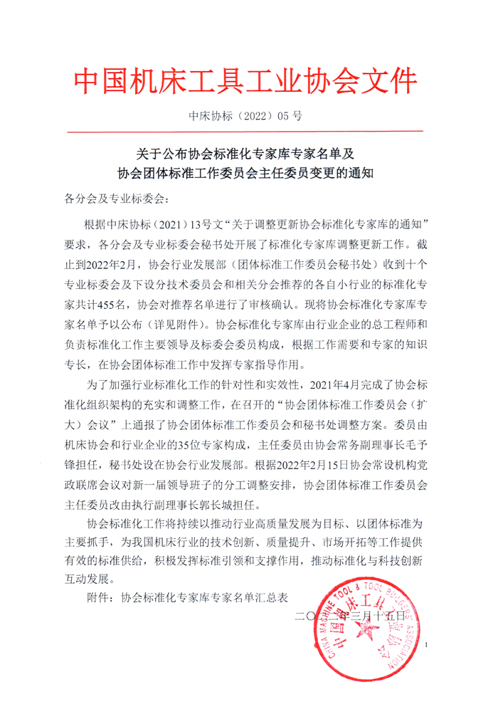 關(guān)于公布協(xié)會(huì)標(biāo)準(zhǔn)化專(zhuān)家?guī)鞂?zhuān)家名單及協(xié)會(huì)團(tuán)體標(biāo)準(zhǔn)工作委員會(huì)主任委員變更的通知