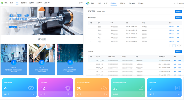 (左上:裝備互聯(lián)平臺服務板塊,右上:數(shù)據(jù)中心服務板塊,下:NC-Link社區(qū)注冊連接數(shù)量)