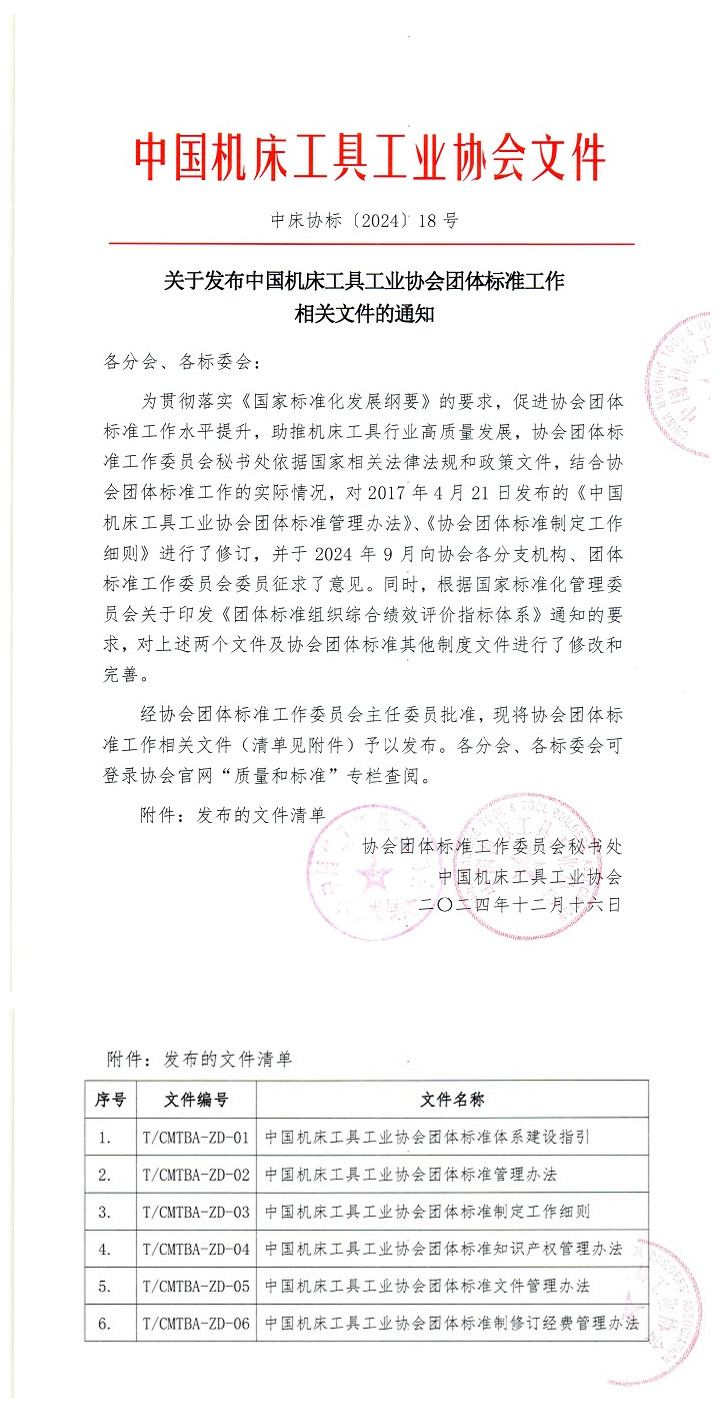 關(guān)于發(fā)布中國(guó)機(jī)床工具工業(yè)協(xié)會(huì)團(tuán)體標(biāo)準(zhǔn)工作相關(guān)文件的通知