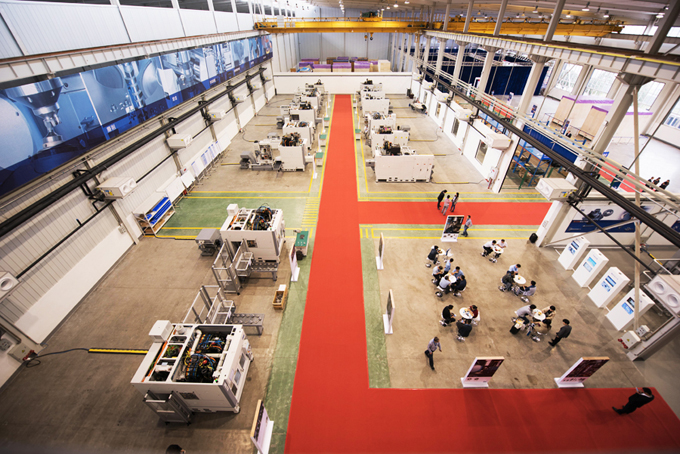在開業儀式現場展示了由埃馬克機床集成的生產線,簡單高效。在中國生產的VL和VT系列模塊化機床是同時期最先進的機床之一。從盤類件和軸類件的車削到滾齒加工技術,直至硬加工的所有技術,模塊化解決方案的機床為成套工藝鏈的研發提供了理想的前提條件。同時,還展示了新的雙主軸倒立式車床VL3 DUO,它是專為生產傳動部件而研發的。連同立式滾齒機VL 4 H 和立式去毛刺機VLC 100 RC,組成了世界上最緊湊和最高效的齒輪生產線之一。