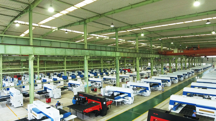 經(jīng)過近幾年的發(fā)展,亞威的各個主機產(chǎn)品已經(jīng)完成了從單機設備向自動化生產(chǎn)線的升級,目前已經(jīng)形成了包括折彎單元、沖壓單元、沖剪復合生產(chǎn)線、激光柔性加工單元、激光焊接生產(chǎn)線、卷板加工生產(chǎn)線以及鋁板加工生產(chǎn)線等眾多自動化設備。同時,母公司的各鈑金機床設備與艾派斯子公司的MES系統(tǒng)、WMS系統(tǒng)實現(xiàn)完美對接,通過設備實時數(shù)據(jù)采集與NC程序自動加載,構建了鈑金自動化數(shù)字生產(chǎn)線,為客戶提供一站式解決方案。