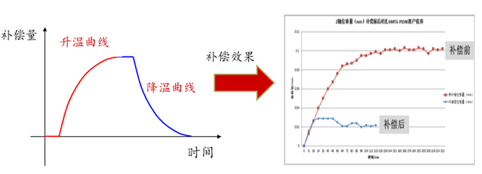 熱機階段和冷機階段,絲杠變形曲線不一致,因此對升溫曲線和降溫曲線采用不同的補償數據,提高機床整體補償精度。