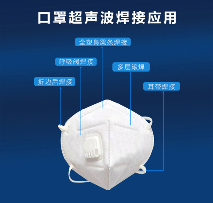 首先,直觀了解一下口罩需要焊接的部位。如下圖所示,口罩焊接涉及全塑鼻梁條焊接、折邊后焊接、呼吸閥焊接、多層滾焊、耳帶焊接等多個部位,之前所采用的人工焊接方式效率低、成本高,且不夠美觀。