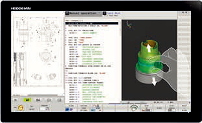 采用面向車間應用的Klartext對話格式編程語言,可在機床上直接編寫銑削和車削加工程序。搭載全新觸控顯示屏,簡化操作。可在觸控顯示屏上進行3D圖形驗證,用手勢更快地操作仿真工件,直接在顯示屏上點擊軟件進行操作,也可以瀏覽整個表和NC數控程序。“擴展工作區緊湊版”的24英寸寬屏顯示器在主窗口旁顯示任何所需的外部應用程序信息,且與數控系統的用戶界面類似。