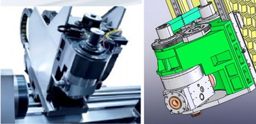 通過對高剛性高定位精度B軸技術的研究,解決了三個關鍵技術問題,即B軸高定位精度的實現方式;B軸高剛性的實現方式;小空間內B軸附屬功能的實現方式。B軸的驅動依靠安裝在主軸上的大轉矩、高可靠性的力矩電機來完成,外環配有水套,實現力矩電機的循環冷卻,控制B軸溫升。