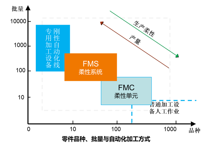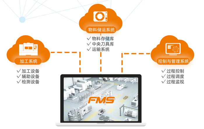 FMS柔性制造系統(tǒng)是面向中小批量、多品種機(jī)加工生產(chǎn)的解決方案,廣泛應(yīng)用于航空航天、刀具模具、汽車、醫(yī)療、光學(xué)和工程機(jī)械等多個行業(yè)。