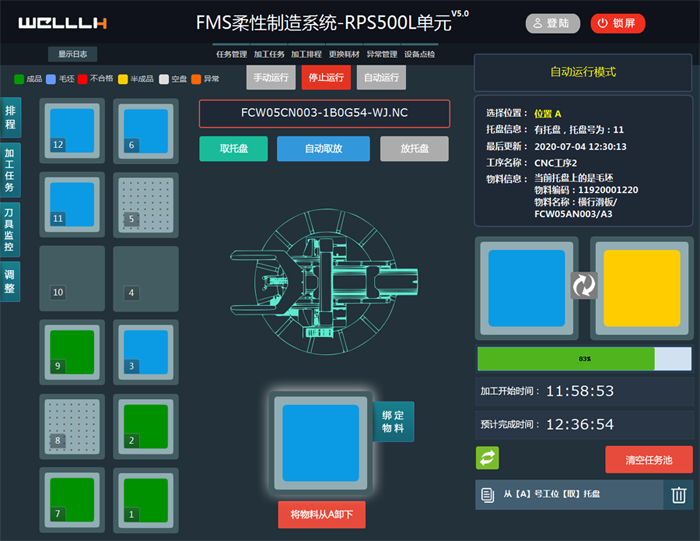 FMS柔性制造系統(tǒng)主要由加工系統(tǒng)、物料儲運系統(tǒng)和控制與管理系統(tǒng)組成,可以較大程度提高設(shè)備利用率,減少設(shè)備的投資,提高生產(chǎn)效率,穩(wěn)定產(chǎn)品質(zhì)量,降低生產(chǎn)成本,提升對市場的快速響應(yīng)能力,對于企業(yè)生產(chǎn)排程,訂單管理與調(diào)度,物料、物流和倉儲,刀具管理等有較大助益。