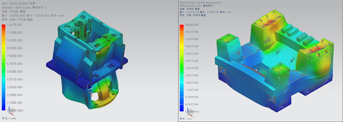 精密的五軸聯動加工中心是整機性能的保障。大連三壘科技有限公司研發的立式五軸聯動加工中心SVW80C-3D是一款增減混合加工設備,床身、立柱和滑枕等主要部件均采用高強度鑄鐵,具有可靠的剛性和吸震性。主要部件結構均經過有限元分析優化,最大限度地保證結構合理(見圖2)。