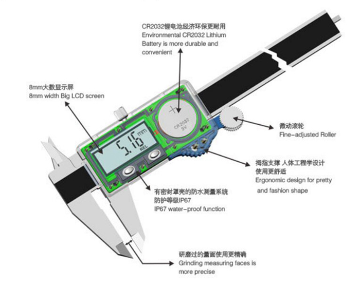 1. IP67防水數顯卡尺