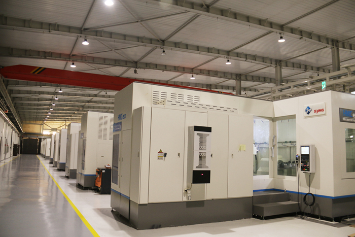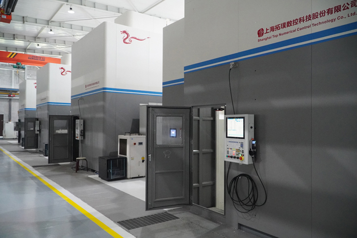 由沈陽飛機工業集團有限公司、沈陽航空產業集團、沈陽航空制造有限公司、武漢華中數控股份有限公司等企業合作建設的航空復雜結構件智能制造生產基地項目,共有國產高檔數控機床57臺,其中配套華中數控系統的機床49臺(五軸機床33臺)。該基地項目是國內航空航天領域首條全部應用國產高檔數控設備的智能制造生產線,同時也是航空航天領域配套華中8型五軸數控系統最多的智能制造生產線,是國產數控機床、國產數控系統與航空工業合作的有益探索。