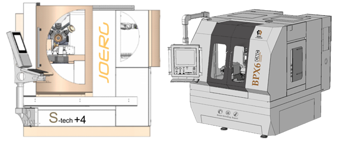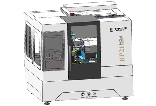 北平機床生產的+4/BPX6系列數控工具磨床,為九軸五聯動精密數控工具磨床。適用于直徑0.2~16mm的圓形或非圓形切削刀具的磨削加工,最大工件長度120mm。每個砂輪軸可配置3片砂輪,HSK接口的砂輪更換時間小于8s;機床可配置北平專利的自動上下料和防撞系統、精密裝夾機構和刀具支撐系統;機床線性軸采用直線電機驅動,回轉軸配置直驅電機;在垂直Y軸使用了液壓平衡系統,使機床升降運動更加平穩,保證工件的磨削精度。