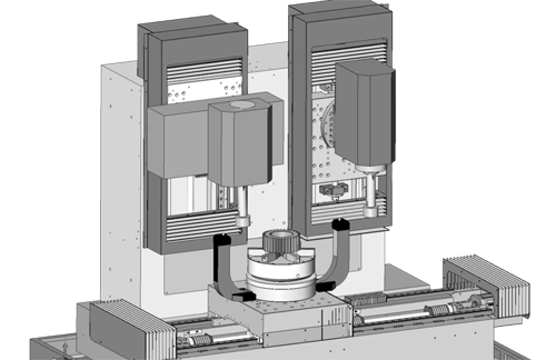 公司生產的LM500/800數控立式磨床,采用雙磨頭并列結構,拖板移動,立軸圓臺布局的型式。立柱是鑄件和天然花崗巖的有機結合并與橫梁合為一體,確保足夠的剛度;主軸內循環水冷,減少熱變形,提高加工精度;主軸錐孔采用HSKC63/HSKC100接口,可實現高精度快速更換磨頭。雙磨頭結構可有效減少裝卡次數,縮短作業時間,提高生產效率。加工圓度可達1.5μm。