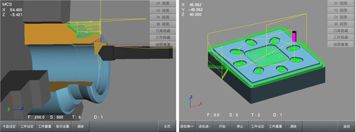 三維仿真:虛擬預加工,用戶可以在控制屏幕上直接看到加工程序的三維仿真結果,即不用開動機床就可以看到模擬加工結果。機床在加工零件時,操作人員可以從顯示界面上預覽到后續的加工軌跡,極大地方便了用戶在車間內同時管理多臺機床。同時,三維的圖形展示更有利于操作工分辨出后續加工是否有問題,以便及時停止機床的運轉,減少損失。