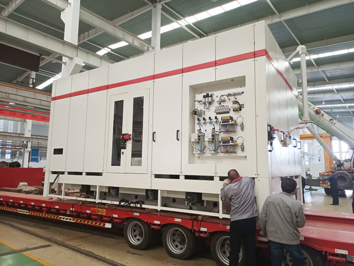 此次交付客戶的多主軸加工中心,是針對新能源汽車鋁材結構件加工而開發的新型交鑰匙產品,用于鋁合金車架銑面、鉆孔、攻絲等加工。該產品采用模塊化設計理念,還可組成臥式(單面、雙面、多面)單主軸或多主軸加工中心,尤其適合電池倉、車身、車架等大型零件銑面、鉆孔、攻絲等工序,配AC主軸可對復雜車身空間面進行銑削、鉆攻等工序的五軸加工。