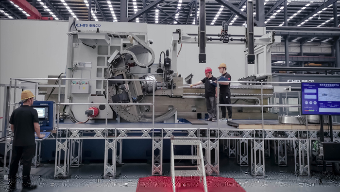 此五軸數控拉床最大切削力達250kN,重量近110t,設備占地僅80m2,執行德國技術標準,擁有國家專利20余項,滿足柔性化、高速、高精度的榫槽加工,可實現進口替代。