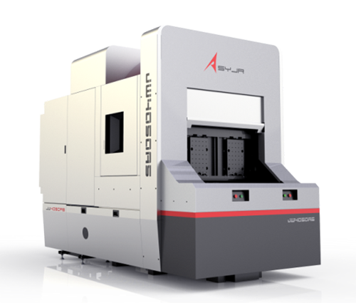 黑燈工廠中,華中數控與沈陽精銳合作研發的JW5040a5、JW5080a5五軸臥式加工中心,針對鋁合金組件需要高效率、高精度加工的特點,采用3+2的結構布局,裝夾一次最多可以完成6個面的加工,1次裝夾就可以完成整個零件的加工,1臺臥式五軸加工中心的效率相當于傳統的6臺三軸加工中心,由此確保大部分特征在一次裝夾中完成精加工。