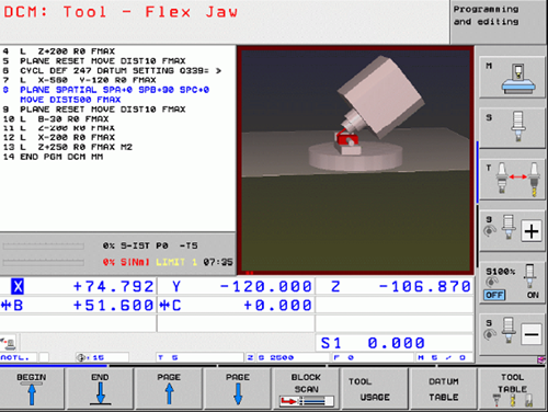 在機床實際加工過程中或測試模式下,DCM軟件都能實時監控這些機床部件的相對位置,如果部件之間的間距小于3-5mm,則數控機床立即停止運動,同時數控系統會出現報警提示。DCM功能對數控系統要求:①#40選項功能“DCM Collision”;②MC 422B/C;