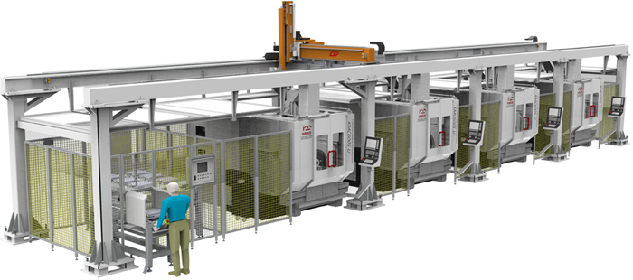 基于機(jī)器人的機(jī)加自動(dòng)線,工件上下料的方式有采用桁架機(jī)器人、關(guān)節(jié)機(jī)器人、有軌自動(dòng)化小車、AGV叉車、協(xié)作機(jī)器人等方式。