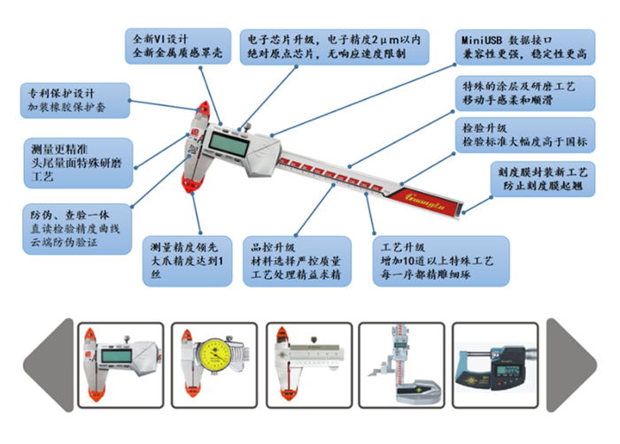 廣陸公司深耕于“量具量?jī)x”行業(yè)30余年,產(chǎn)品從創(chuàng)業(yè)初期的一把“電子數(shù)顯卡尺”,到目前已覆蓋到全系列高精度工業(yè)尺寸測(cè)量產(chǎn)品及測(cè)量解決方案。產(chǎn)品主要應(yīng)用于基礎(chǔ)制造業(yè)、航空航天、鐵路等領(lǐng)域。其中主導(dǎo)產(chǎn)品電子數(shù)顯量具,屬于關(guān)鍵補(bǔ)短板領(lǐng)域及“工業(yè)四基發(fā)展目錄”中的產(chǎn)業(yè)技術(shù)基礎(chǔ)設(shè)備。