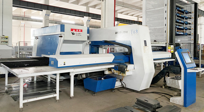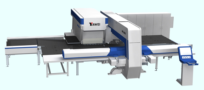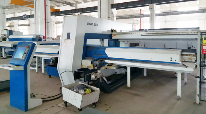 AMS.HS-30510 板料沖剪自動(dòng)化加工生產(chǎn)線是基于數(shù)控伺服沖床和新型智能直角剪為主機(jī)向兩級(jí)擴(kuò)展成帶自動(dòng)上下料功能的加工單元,包括上料臺(tái)車、自動(dòng)上料系統(tǒng)、沖床主機(jī)、直角剪及分揀落料系統(tǒng)等。