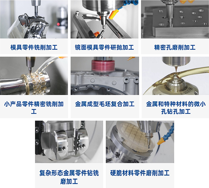 在需求牽引下,北京精雕經(jīng)過多年的發(fā)展,持續(xù)圍繞高端數(shù)控機床加大研發(fā)投入,旗艦產(chǎn)品精雕高速加工中心已經(jīng)形成了系列化的產(chǎn)品,具備穩(wěn)定實現(xiàn)“0.1微米進給、1微米切削,納米級表面效果”的極致制造能力,其技術性能處于國際先進水平,應用能力達到國際領先。憑借精雕機的精密加工能力、合理的軟硬件配置以及成熟的“精雕精密加工解決方案”,精雕機被廣泛應用至模具零件銑削、鏡面模具零件研拋、精密孔磨削、小產(chǎn)品零件精密銑削、金屬成型毛坯復合加工、微小孔鉆孔、復雜形態(tài)金屬硬料鉆銑磨、硬脆材料研磨加工等多個領域。模具零件銑削加工:穩(wěn)定實現(xiàn)2-15μm精度的模具零件銑削加工,實現(xiàn)模具裝配“只配不修”; 鏡面模具零件研拋加工:面型精度達到微米級,表面粗糙度小于10nm,呈現(xiàn)鏡面效果;精密孔磨削加工:穩(wěn)定實現(xiàn)2-5μm加工精度的高精度孔磨削;小產(chǎn)品零件精密銑削加工:穩(wěn)定實現(xiàn)2-15μm加工精度,滿足復雜形態(tài)精密小產(chǎn)品零件的生產(chǎn)要求;金屬成型毛坯復合加工:基本加工精度小于20微米成型毛坯鉆銑鏜磨復合加工;金屬和特種材料的微小孔鉆孔加工:穩(wěn)定實現(xiàn)多種難切削材料的微小孔鉆孔加工,微孔加工快、準、穩(wěn);復雜形態(tài)金屬零件鉆銑磨加工:穩(wěn)定實現(xiàn)硬度HRC50以上的復雜形態(tài)零件鉆銑磨精密加工;硬脆材料零件磨削加工:穩(wěn)定實現(xiàn)尺寸精度要求<5μm的復雜形態(tài)特種脆硬材料零件磨削加工。