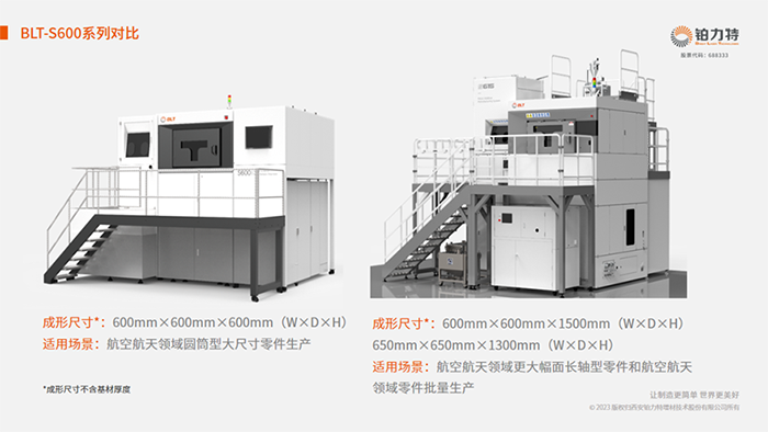 2023年6月19日,西安鉑力特增材技術股份有限公司BLT-S615 金屬3D打印設備正式發布。BLT-S615是鉑力特針對增材制造用戶不斷變化的生產需求,在BLT-S600長時間使用驗證的基礎上進行擴展和系統更新而推出的適用于大尺寸零件批量生產的新增材制造設備。