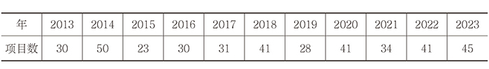 表1 2013-2023年機(jī)械工業(yè)科學(xué)技術(shù)獎(jiǎng)(機(jī)床組)通過形式審查項(xiàng)目數(shù)
