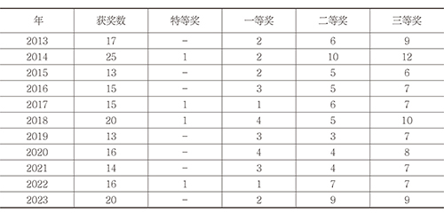 表2 2013-2023年機(jī)床工具專業(yè)歷年獲獎(jiǎng)情況