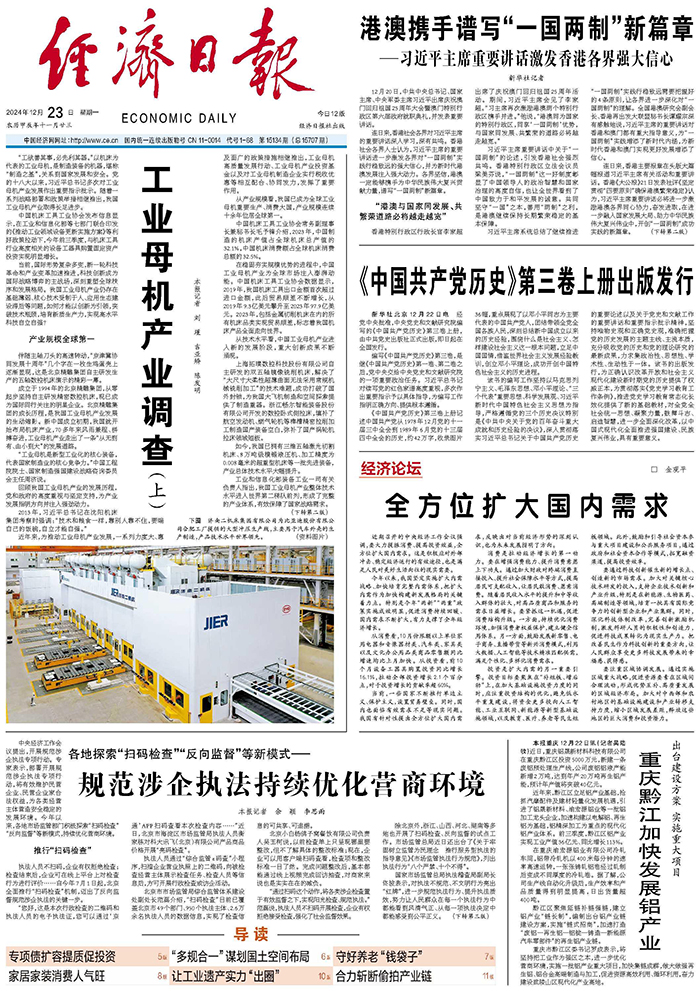 【編者按】12月23日,《經濟日報》頭版頭條刊發(fā)“工業(yè)母機產業(yè)調查(上)”,引發(fā)業(yè)界和社會關注。這是《經濟日報》貫徹落實黨的二十大會議精神,圍繞重點產業(yè)所進行深度調研的成果報告,旨在為國家相關產業(yè)政策制定和調整提供重要參考依據(jù)。今轉發(fā)該文,后續(xù)還將發(fā)布該調查報告的(中)和(下),敬請關注。