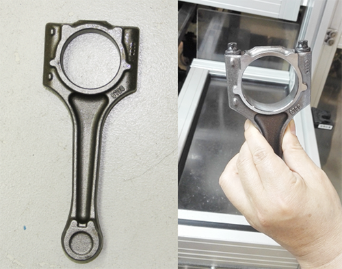 EA888發(fā)動(dòng)機(jī)連桿的結(jié)構(gòu)優(yōu)化也十分明顯,在確保工件強(qiáng)度和剛性的前提下, 其桿部至圍繞大頭孔部分都進(jìn)行了瘦身。若取桿部中截面觀察, 呈清晰的“工”字形。小大頭孔部的上、下端面,在極大多數(shù)情況下都為一組平行面, 經(jīng)結(jié)構(gòu)優(yōu)化后的這部分形狀變成了鍥形。其他還有若干處也體現(xiàn)了去重、優(yōu)化,如連桿小大頭孔凸緣部分的削薄處理以及取消孔內(nèi)的銅套(見圖3)等。