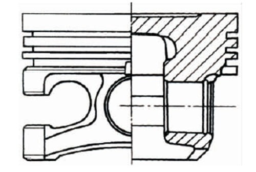 另一種典型的輕量化活塞為鋼頂鋁裙的鉸接式活塞。它的活塞頂與活塞銷是兩個(gè)完全獨(dú)立的零件,活塞頂能相對(duì)于裙部做獨(dú)立的自由擺動(dòng)。隨著活塞直徑的增加,鉸接式活塞顯示出其輕量化優(yōu)勢。當(dāng)活塞直徑D<80mm時(shí),純鋁活塞質(zhì)量輕;當(dāng)D=80mm時(shí),鋁活塞和鉸接活塞質(zhì)量基本相等;當(dāng)D>80mm時(shí),鉸接活塞輕20%。另外,鋼頂鋁裙的鉸接式活塞使壓縮高比常規(guī)鋁活塞更小,降低了發(fā)動(dòng)機(jī)的總高度。