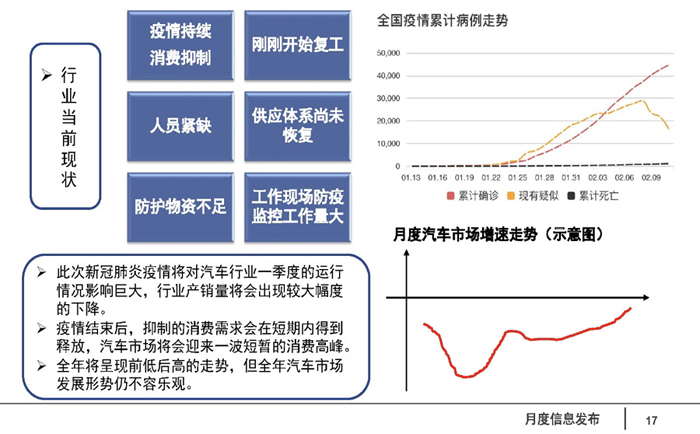 近期各地政府相繼快速出臺的經濟保障政策將有效為企業減負,在一定程度上幫助企業走出困境,推動各行業逐漸好轉。從已有信息來看,汽車行業企業均在盡力推進復工復產工作。從長期發展來看,新冠肺炎疫情的出現可能加速產業格局的優化調整,優勢企業或將獲得更多的市場資源,進而對優勢企業做大做強起到一定的促進作用。