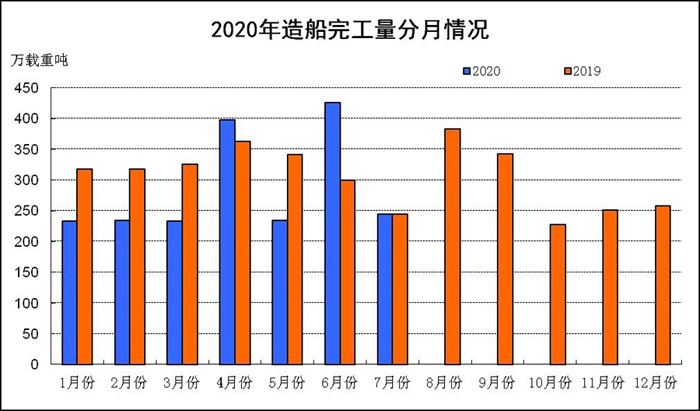 2020年1-7月份,我國造船完工量降幅收窄,新承接船舶訂單和手持訂單量同比下降。重點監測企業工業總產值等主要經濟指標繼續下降。