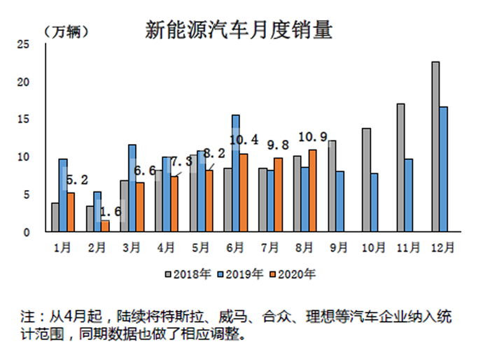 1-8月,新能源汽車產銷60.2萬輛和59.6萬輛,同比分別下降26.2%和26.4%,降幅比1-7月收窄5.5和6.4個百分點。在新能源汽車主要品種中,與上年同期相比,純電動汽車和插電式混合動力汽車產銷同比均呈下降,降幅均比1-7月繼續收窄。