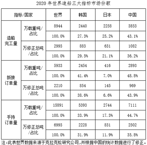 2020年我國(guó)造船三大指標(biāo)保持世界領(lǐng)先