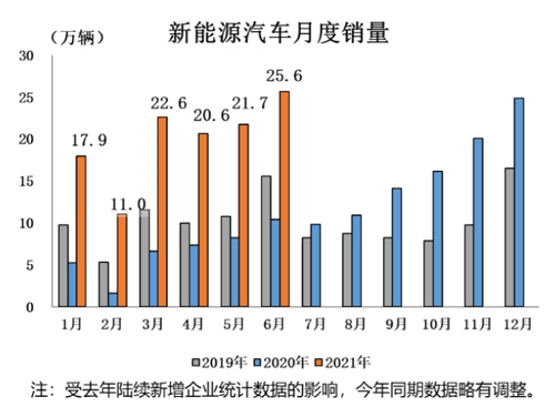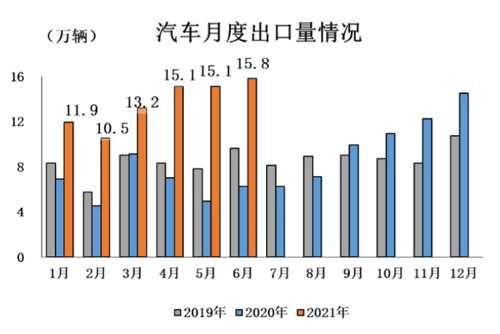 1-6月,汽車(chē)產(chǎn)銷1256.9萬(wàn)輛和1289.1萬(wàn)輛,同比增長(zhǎng)24.2%和25.6%,增速比1-5月回落12.2個(gè)百分點(diǎn)和11.0個(gè)百分點(diǎn)。與2019年同期相比,產(chǎn)銷同比增長(zhǎng)3.4%和4.4%。