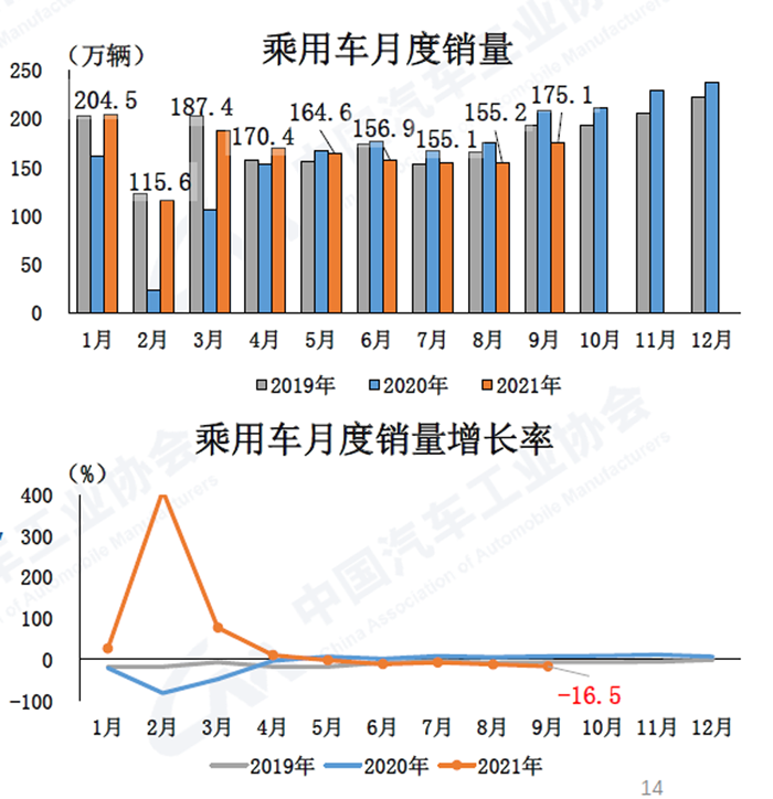 9月,汽車產銷分別達到207.7萬輛和206.7萬輛,環比增長20.4%和14.9%,同比下降17.9%和19.6%。